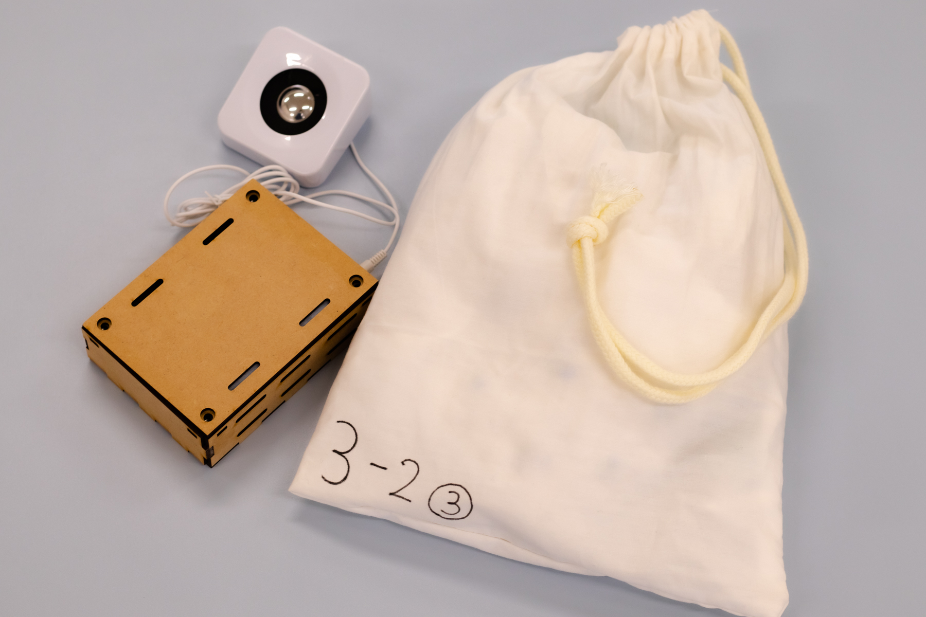 その楽しさを取り入れて、少しでも荷物を持ち帰るのが楽しくなるように本作品を制作しました。デバイスを入れた袋を振ると、その速度に応じて3種類の効果音が鳴ります。