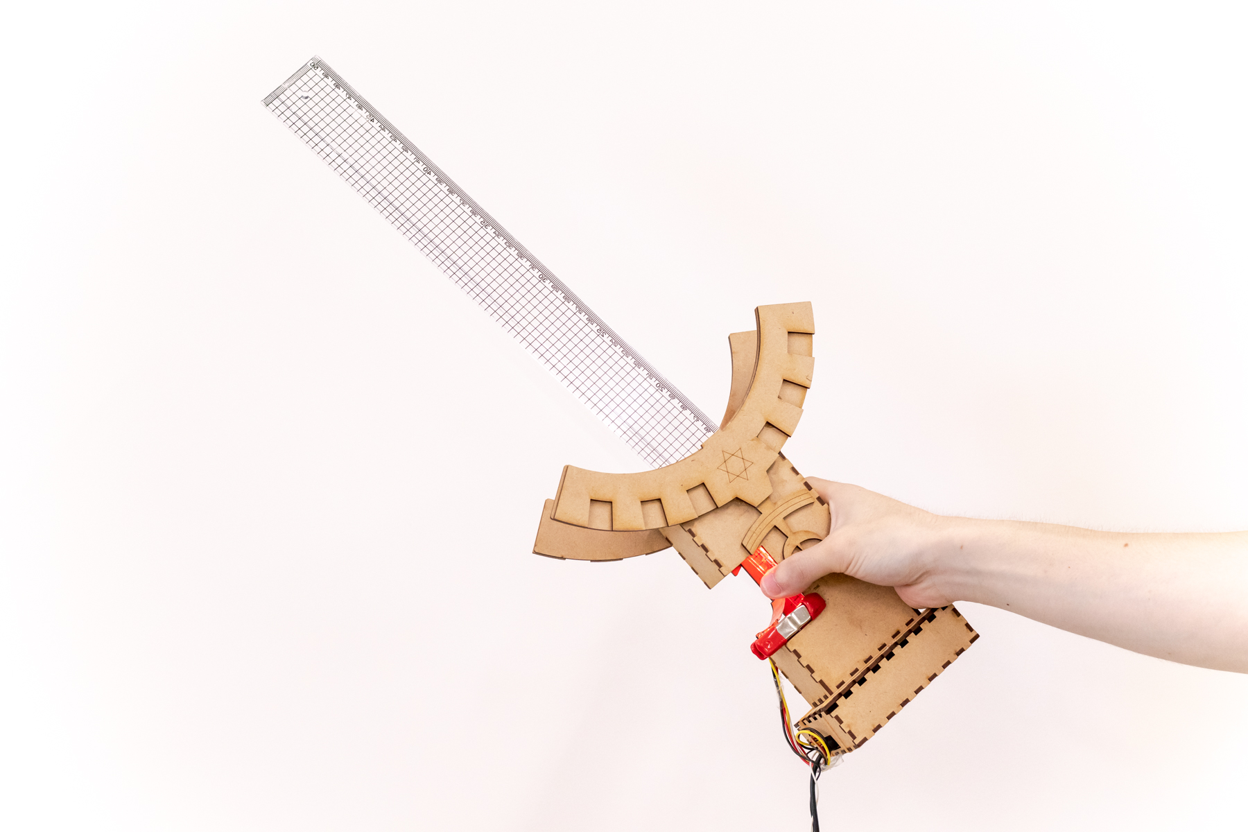 男の子なら、小さい頃、棒を剣に見立てて、チャンバラごっこをしたことがあると思います。その体験を、より楽しくできないかと思い、本作品を制作しました。