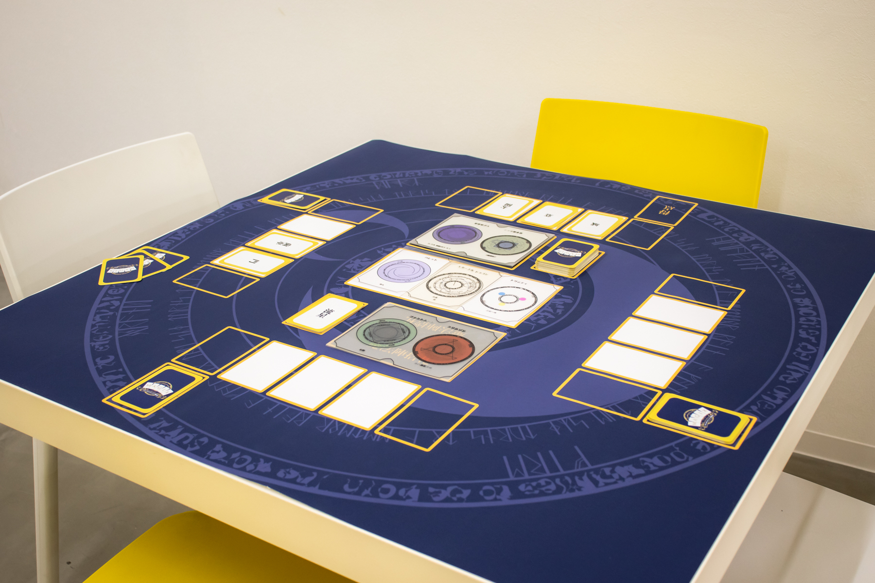 誰しもが一度は憧れる「呪文の詠唱」、でも大人になった今は少し恥ずかしいかもしれない。このボードゲームは、そうした憧れをもつ人が、誰の目も憚らず呪文を堂々と詠唱できればいいのに、という思いを込めて制作しました。気の合う仲間と遊べば、最高に盛り上がると思います。 2枚の透明な「魔法陣カード」から生まれる新しい魔法に合わせて、それぞれが手札の「ワードカード」を使って詠唱を考え、投票で一番ふさわしいものを決めていきます。 |