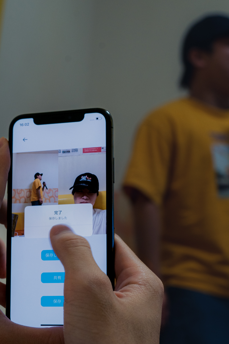本作品は、人の写真を撮るときに、同時にフロントカメラによって自分の顔も撮影することで、撮影者と被撮影者を別々のカットで同時に撮影することができます。自撮りとは異なる写真体験ができます。